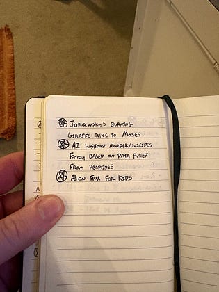 Per Andy Futuro and Zani D— I have no idea where these ideas were supposed to take me… (and yes I am nearly forty and still draw pentagrams in my notebook because I’m fun).