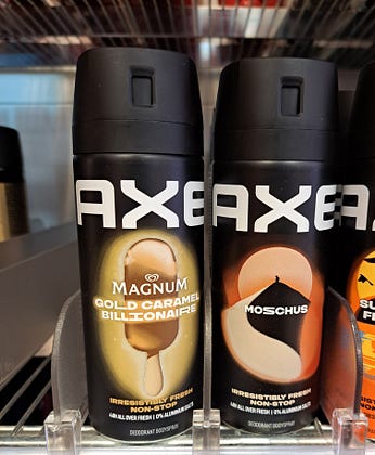 Die Produktentwickler hier haben sich für “irgendwatt mit Moschus und Eiscreme” entschieden. Geschlechterrollen sind allem voran halt ‘ne Marketingstrategie, ich weiß nur manchmal auch nicht was zur Hölle die Vision ist die man gerade wieder verkaufen möchte. Wo sind die Masculinity Coaches die mir den Kram erklären wollen