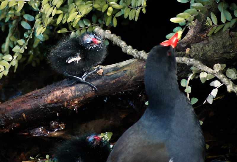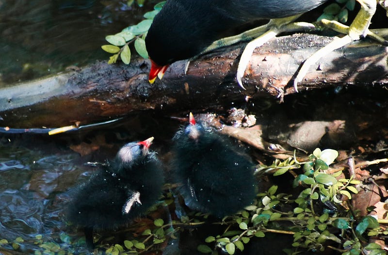 Ich habe vor ein paar Tagen erfahren dürfen, wie die Küken von Teichhühnern aussehen. Bis dato habe ich mich noch nicht ganz von dem Anblick erholt.