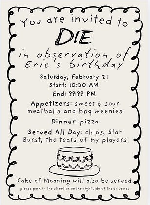 The invitations I texted to my friends for my d&d birthday party this weekend. Took 30 mins in Canva, worth it