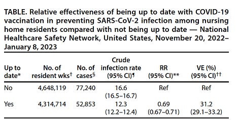 Further evidence that bivalent booster shots reduced Covid infections, approximately 30%, among nursing home residents (compared with no booster)