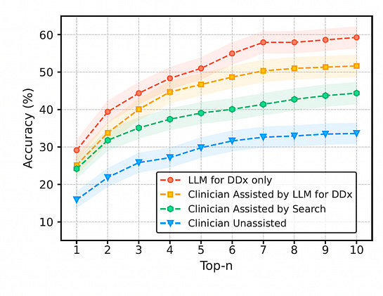 CPC NEJM case records comparing LLM (Med-PaLM2) vs 20 physicians (board certified internists with ~9 years experience) LLM alone was more accurate than clinicians twitter.com/NEJM