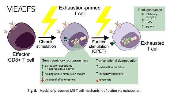 New, strong evidence for exhausted T cells in ME/CFS, relevant also to Long Covid, and laying a foundation for candidate treatments, open-access
