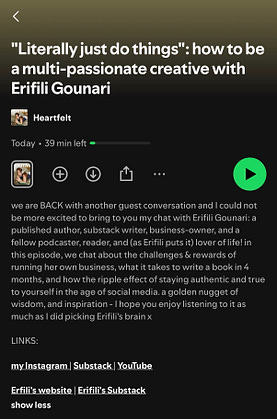 this was genuinely such a wonderful podcast conversation on the heartfelt pod, give it a listen!! đǎđĒģđī¸đ