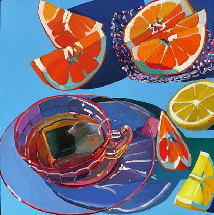 My oil painting on cradled birch wood panel. Everett my son, let me know he did not like this painting because the oranges are too happy. 😬😂
