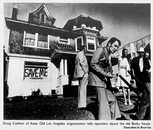 As citizen preservationists fighting to protect beautiful old buildings that function as affordable housing, we stand on the shoulders of giants--enraged and slightly nuts giants. Saturday, we'll honor Doug Carlton and KOLA in his beloved West Adams.