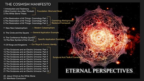 The intent of the Cosmism Manifesto is to provide a restored cosmology framework that strengthens faith in Christ, clarifies temple symbolism, and prepares disciples to endure the storms of the last days with confidence, rooted in the covenantal promise of the White Stone.