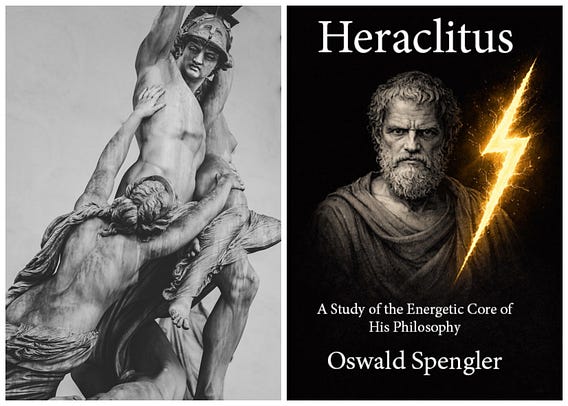 "In his doctoral dissertation from 1904, Spengler approaches Heraclitus as a thinker of process. Being appears as becoming, order as measure, and truth as logos grasped through form. This stance rejects any picture of cultures as fixed substances. Civilizations arise, unfold, harden, and pass on their force into new shapes. History, in this view, reads as a record of growth and decline governed by inner law rather than by choice or plan. Such clarity gives Spengler his lasting power."