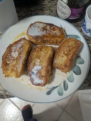 Hay quien las reboza con azúcar y canela. Yo les pongo por encima miel de la buena disuelta en agua a partes iguales y lo que sobre de la leche merengada. Quedan jugosísimas.