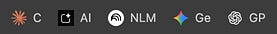 a screenshot of my taskbar showing all the AI tools I currently use, ordered by how often I open them