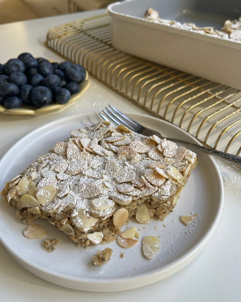 Working on breakfast options for our August high protein meal prep plans and this Almond Croissant Baked Oats is a winner! 27g plant protein per serving.