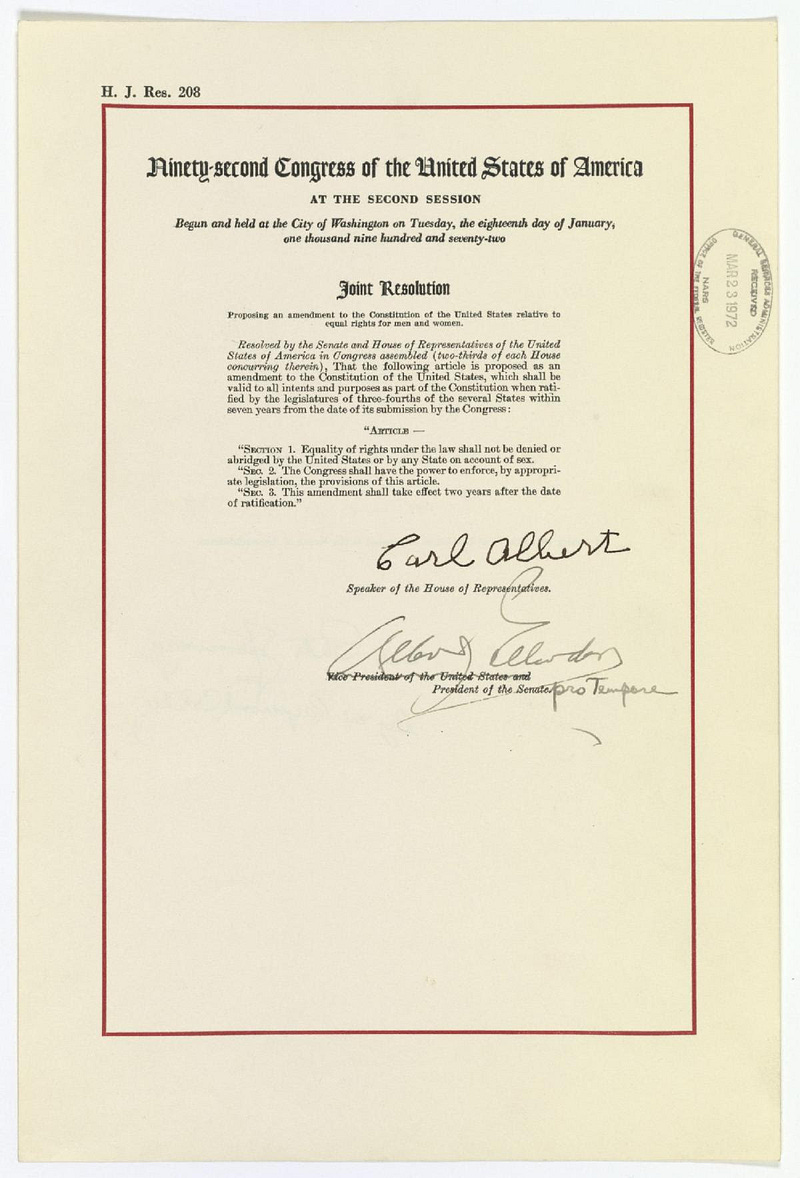 On March 22, 1972, the U.S. Senate passed the Equal Rights Amendment, stating, “Equality of rights under the law shall not be denied or abridged by the United States or by any State on account of sex.”