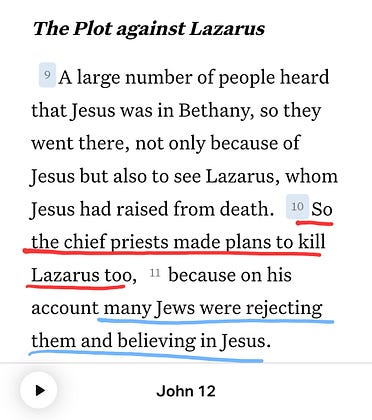 Think about this, Lazarus was brought to life and he was a living testimony to the AUTHOR of all life!