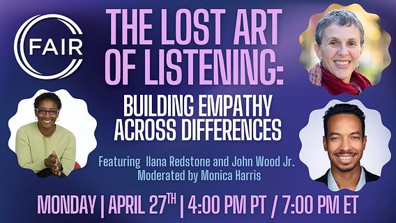 The Lost Art of Listening: Building Empathy Across Differences š¬ Join FAIR Advisors John Wood, Jr. and Ilana Redstone for this upcoming webinar, moderated by FAIR Executive Director Monica Harris.