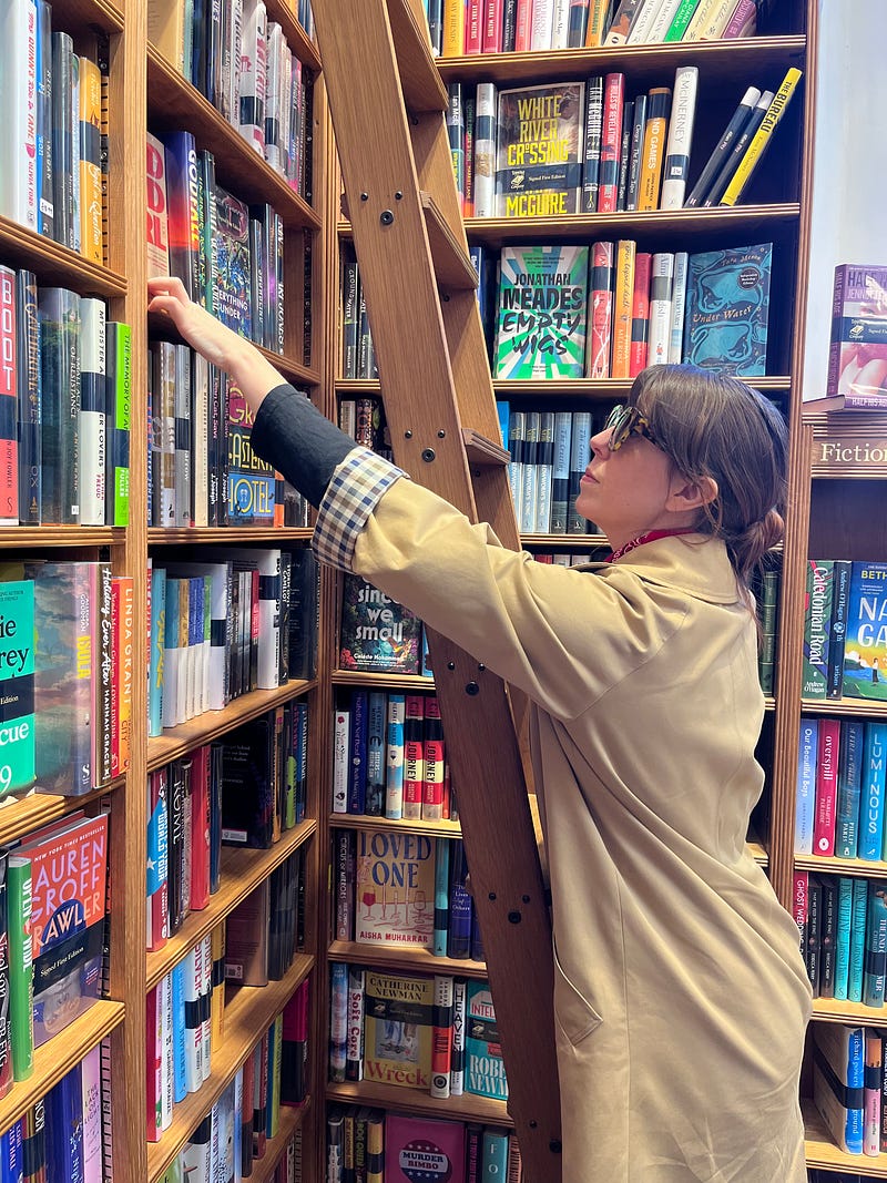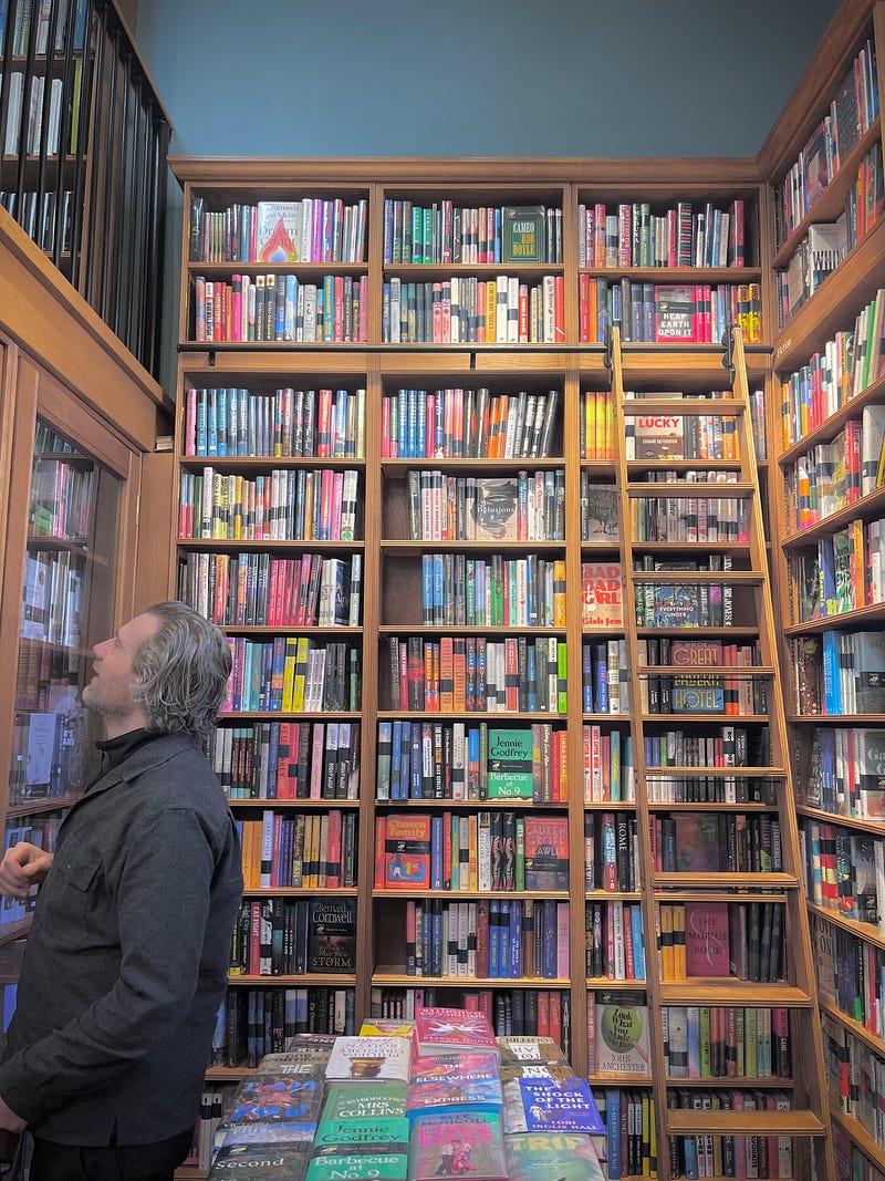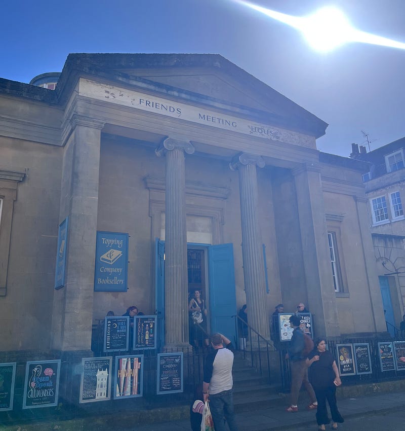 Topping & Company booksellers in Bath. A former Quaker house, free tea & coffee and bookshelf ladders like in Beauty & the Beast. 5 stars