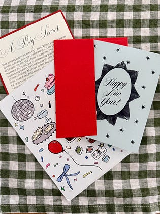 I am now including a greeting card in each monthly mailer for founding subscribers. Frankly, the post office has no idea how many colorful envelopes are coming their way. More snail mail in 2026!