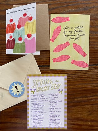 Founding subscribers get a greeting card and postcard in the mail every month! 💌 (and an all access pass to Feeling! Magazine too!)
