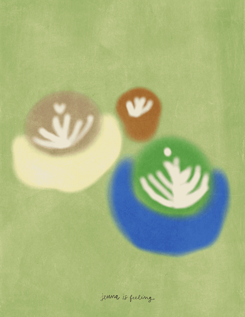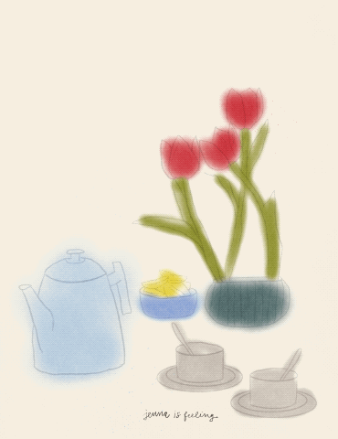 A not very still still-life of a sunny café counter in the city.