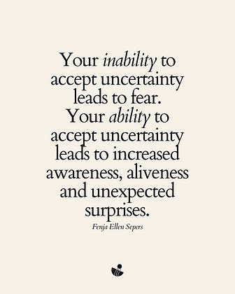 This remains a lifelong practice. Each day, each decision, each moment ahead, it's about making the decision to learn to accept, embrace, and dance with uncertainty. To patiently wait for what life may present when we dare to let go of control.