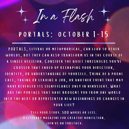 Get ready, people! Not too early get thinking about our next themed submission. Some people, like Nina B. Lichtenstein, uses her body parts as PORTALS. Think wide and generously as you inspire yourself to write and submit your «portal» story!