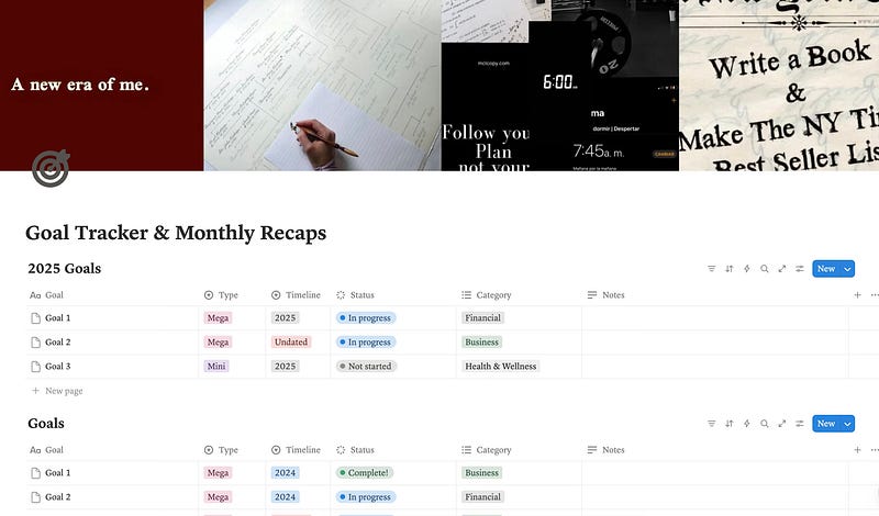 I’ve also included the New Years goal planning article so you can use it in tandem with the goal planning/tracking notion page.
