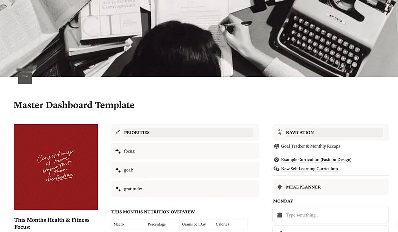 It is the Master Dashboard and also includes the template for managing a self-learning curriculum, as well as deep focus tasks for the work week, and other goodies. I’ve used this for ehhh about 7 years now.