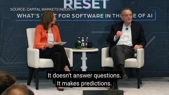 「我逐漸意識到,AI基本上是在做預測,它不回答問題…它預測的是,句子中的下一個詞應該是什麼。」