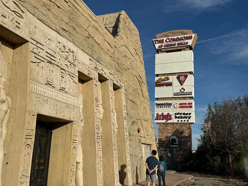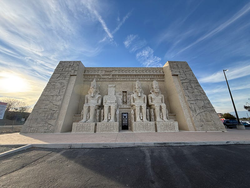 Farou Foods in Chino Hills, an unfinished Egyptian restaurant that replicates the Abu Simbel temples along the Nile River. It's become a legit tourist destination and even reproduces flood damage suffered by the original. It's located in a strip mall with an Arby’s down the street from the BAPS Shri Swaminarayan Mandir. This area of SoCal has several large temples of various denominations, perhaps because it is where LA, San Bernardino and Orange and Riverside Counties all touch/overlap.