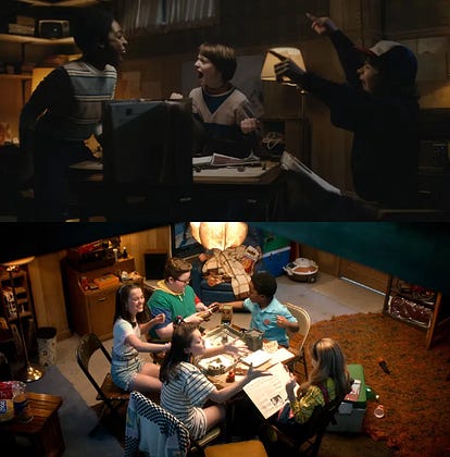 This is the header image for my post tomorrow. The top screencap is from the first season of Stranger Things, the bottom is from the latest and last season. As you can see, in between Netflix developed its horrible cinematography rules. The first season is moody, atmospheric, and looks like a million bucks. The later seasons are overlit, overly sharp, overly saturated, as well as sterile, flat, and boring. Characters are forever standing in horizontal lines at the exact same depth in camera. It’s all such a drag.
