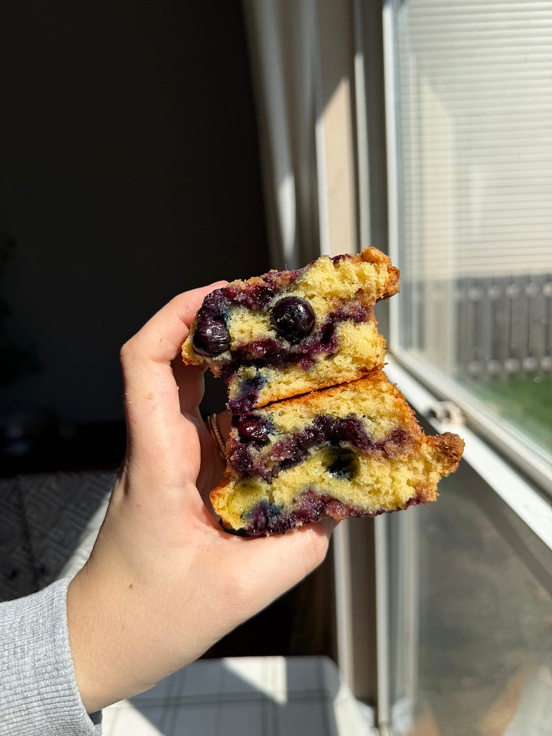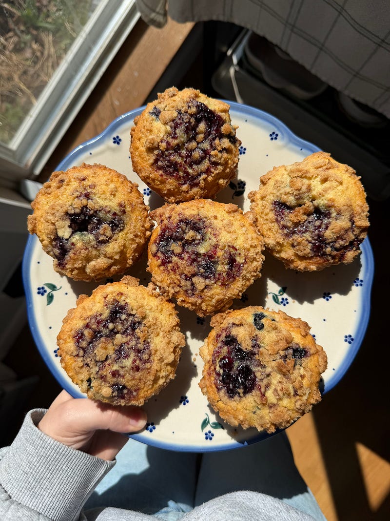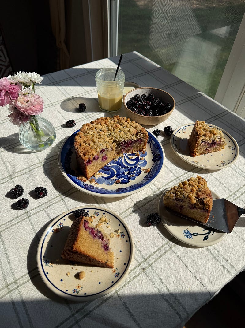 in the kitchen today 🫐 blueberry coffee cake muffins & a blackberry earl grey crumb cake