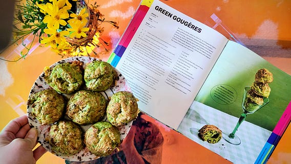 New cookbook club posted -- Green Gougères from “How to Eat Weed & Have a Good Time” by Vanessa Lavorato
