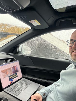 I love taking meetings from my car! The light is usually 👌🏻 and the audio sounds great.