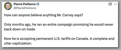 By your submission here, Mr. Poilievre, you are confirming that you would have sold Canada to Trump without blinking an eye, in order to be able to say that you were able to get a deal...🤦🏻♂️