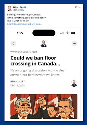 And NOW when Conservative MPs are crossing over to the Liberals because they can no longer stomach the ‘Frat House’, and embarrassingly poor and pointless leadership of Poilievre, Scheer and Lantsman – Lilley is leading the kooky Conservative chorus for floor crossing to be ‘banned’?? 😂😂
