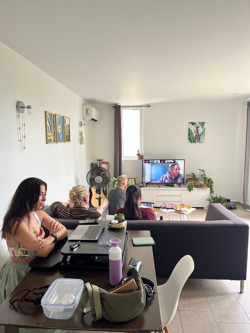 Behind the scenes at Far Flung Fiction yesterday! Ft. Bradley Ramsey on the TV for our lil live audience/support team 📺