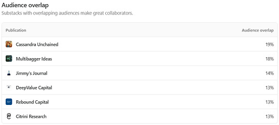 If you asked me who I thought my largest overlap would be, I never would have guessed Michael Burry’s Cassandra Unchained. He and I have a very different economic outlook and strategy. Jimmy Investor’s Jimmy’s Journal I get, definitely more aligned with our outlook and investing strategies.