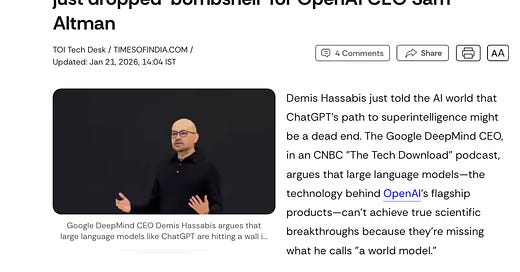 Breaking: Sir Demis Hassabis becomes the latest to say that ChatGPT is a dead-end and that we must turn our focus to world models