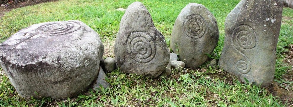 The other pictures show the sacred stone artwork of the Yumbo people. Notice the similarities to the works of my Pictish and Gaelic ancestors and their Ogham stones?