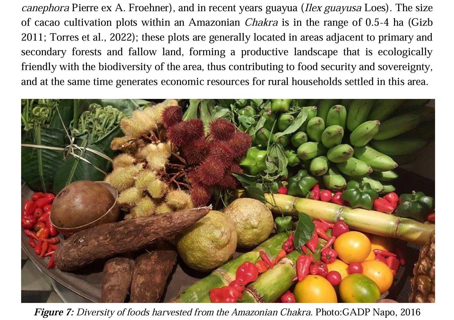 Last two pictures shows a modern day Yumbo style Chakra food forest and a harvest from a modern day Chakra Food Forest in Equador.