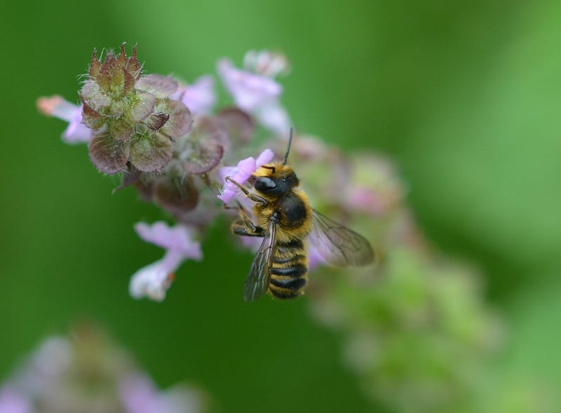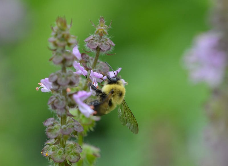 (First picture shows Vana Tulsi (Ocimum gratissimum), also known as Wild Forest Holy Basil germinating and puhsing through the soil. second, third and forth pics show pollinators enjoying Tulsi nectar from blossoms in past summers, and last pic shows a Amrita Tulsi (Ocimum tenuiflorum) seed just starting to germinate, which is sending out root hairs (celia) to gather moisture from the air (a 3 dimensional atmospheric water sequestration system that utilizes fractal geometry to maximize efficiency).