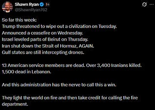 And Lebanon was explicitly carved out of the US and Iran ceasefire for a reason, so even bringing it up here is silly and meant to distract.