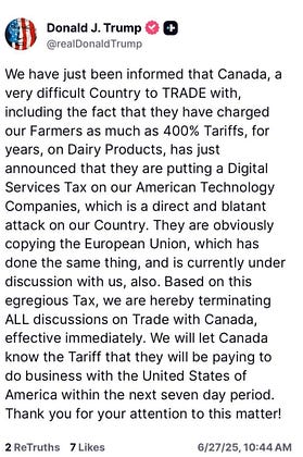 Canada’s Not Your Dairy Cow, and You’re Not an Economist -A Response from another insane Truth Social Post ( attached )