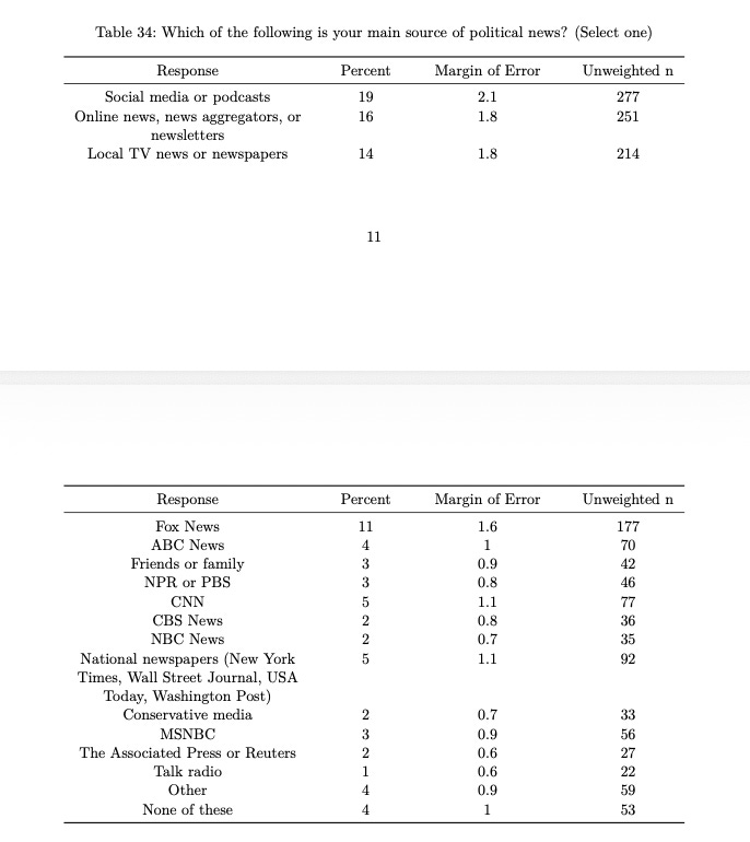 In our new October Strength In Numbers/Verasight poll, 35% of respondents said their main source of news is digital-first sources, such as podcasts, social media, and newsletters (like this Substack!).