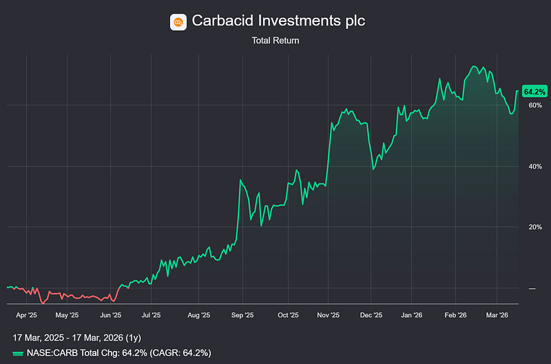 while Carbacid has brought a total return (share price appreciation & Dividends) of approximately 64.2%, within one year, to shareholders, which is approximately 5.35% per month