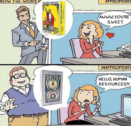 Alan Moore is so correct when he writes in The Moon and Serpent Bumper Book of Magic that Crowley’s Thoth tarot is more “blunt” than the other decks.