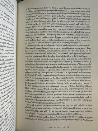 “Roosevelt is far and away the worst president we have ever had, and also the most admired and the most satisfactory. The nation’s admiration of him and pride in him and worship of him is far wider, far warmer and far more general than it has ever before lavished upon a President, even including McKinley, Jackson, and Grant.” - Mark Twain, April 3, 1906, as dictated in his Autobiography, volume 2.