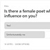 I am pleased to find that slightly more people answered โYesโ than I had expected (Iโd thought it would be evenly split). If youโd like, please tell me who your favourite female poet is. It doesnโt matter if their work hasnโt been translated into English.