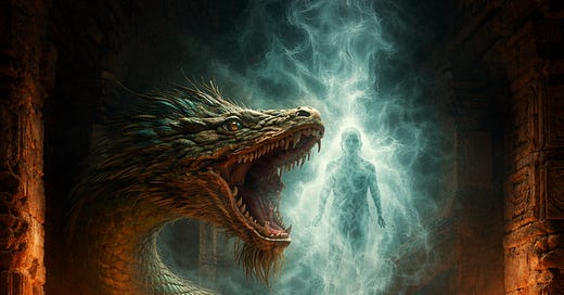 The Vision Serpent is a door that learns to breathe: summoned in elite Maya ritual, rising out of blood and smoke, its open mouth functioning like a gateway where gods or ancestors can emerge into the human world. Two heads, one body, and a single job: make the boundary crossable, then make that crossing legible as legitimacy.