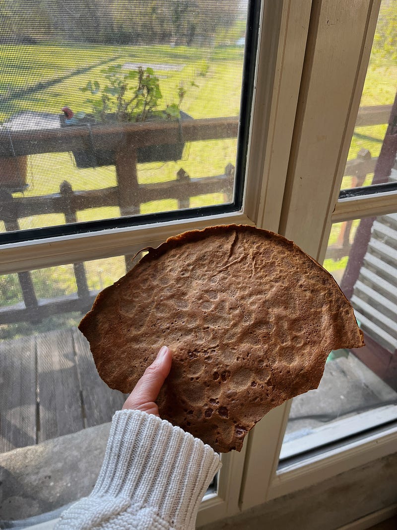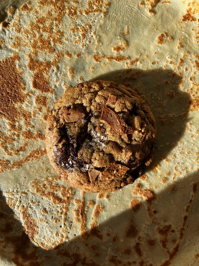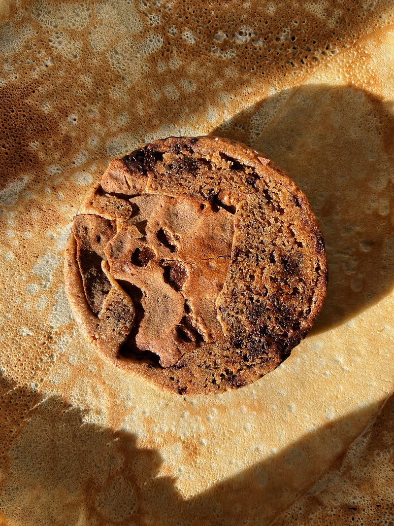 A few weeks ago, when we made crêpes for La Chandeleur in France, we had many left, so I toasted them in the oven and added them to my rye chocolate cookies, which worked quite well. ✨