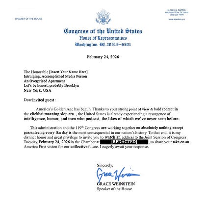 any new york based media/politics/culture writers in the building who don’t want to suffer through watching the state of the union alone? who would like to have 1 or 2 or 6 drinks while watching with other media/politics/culture people? lmk. i’m throwing a party :)
